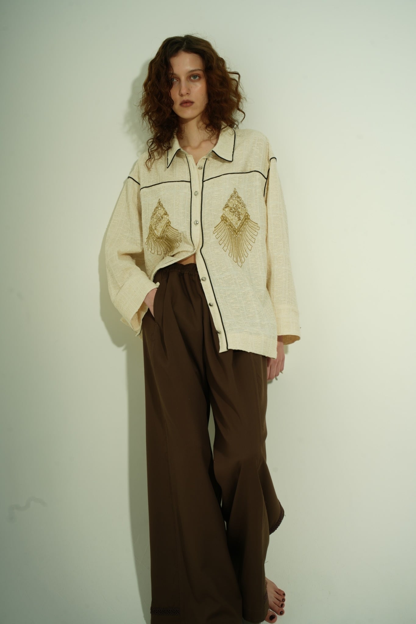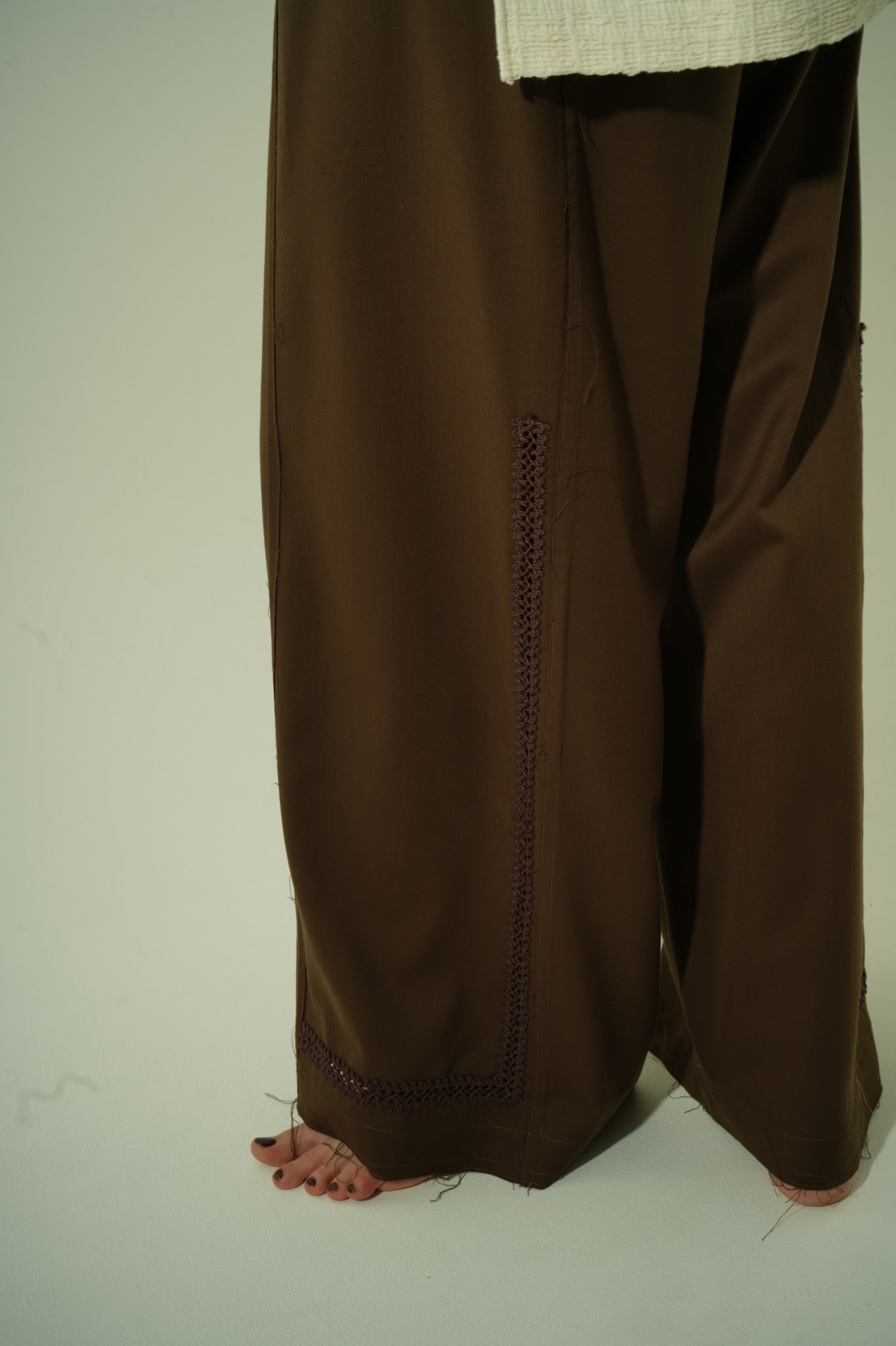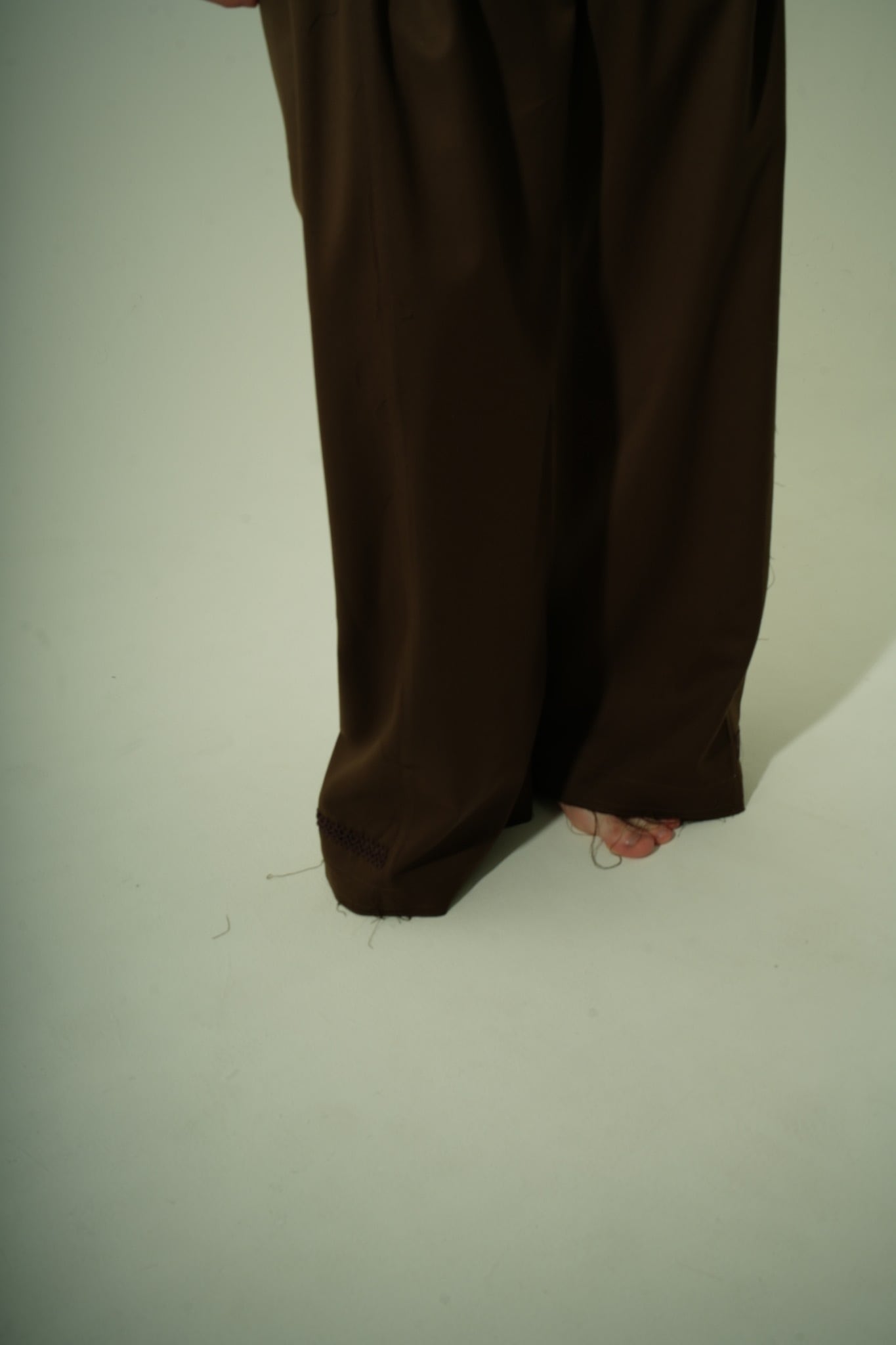【先行受注 2026 MAIN COLLECTION】BASKET EMBROIDERY WIDE TROUSERS / BRWN