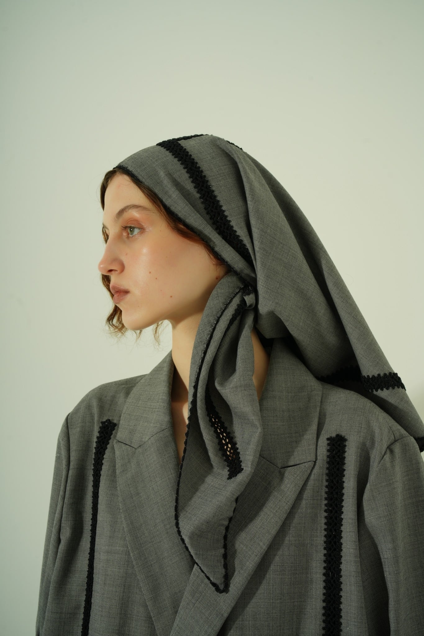 【先行受注 2026 MAIN COLLECTION】BASKET EMBROIDERY TRIANGLE SCARF / GRY