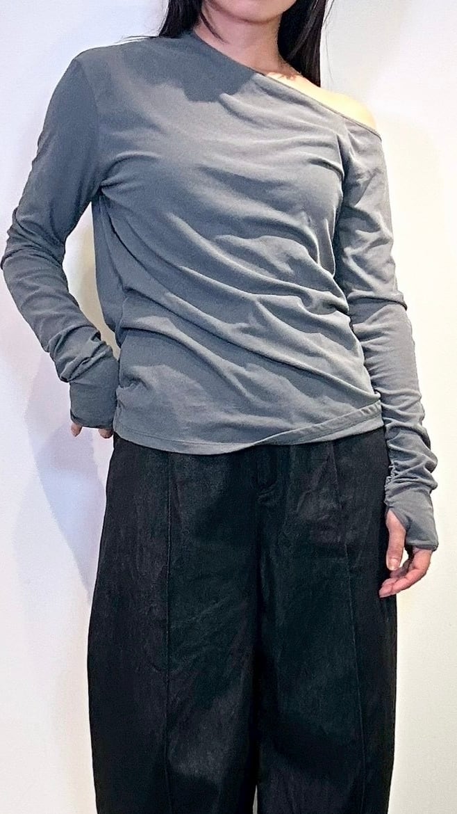 ASYMMETRY SHEER TOPS / CHACOAL