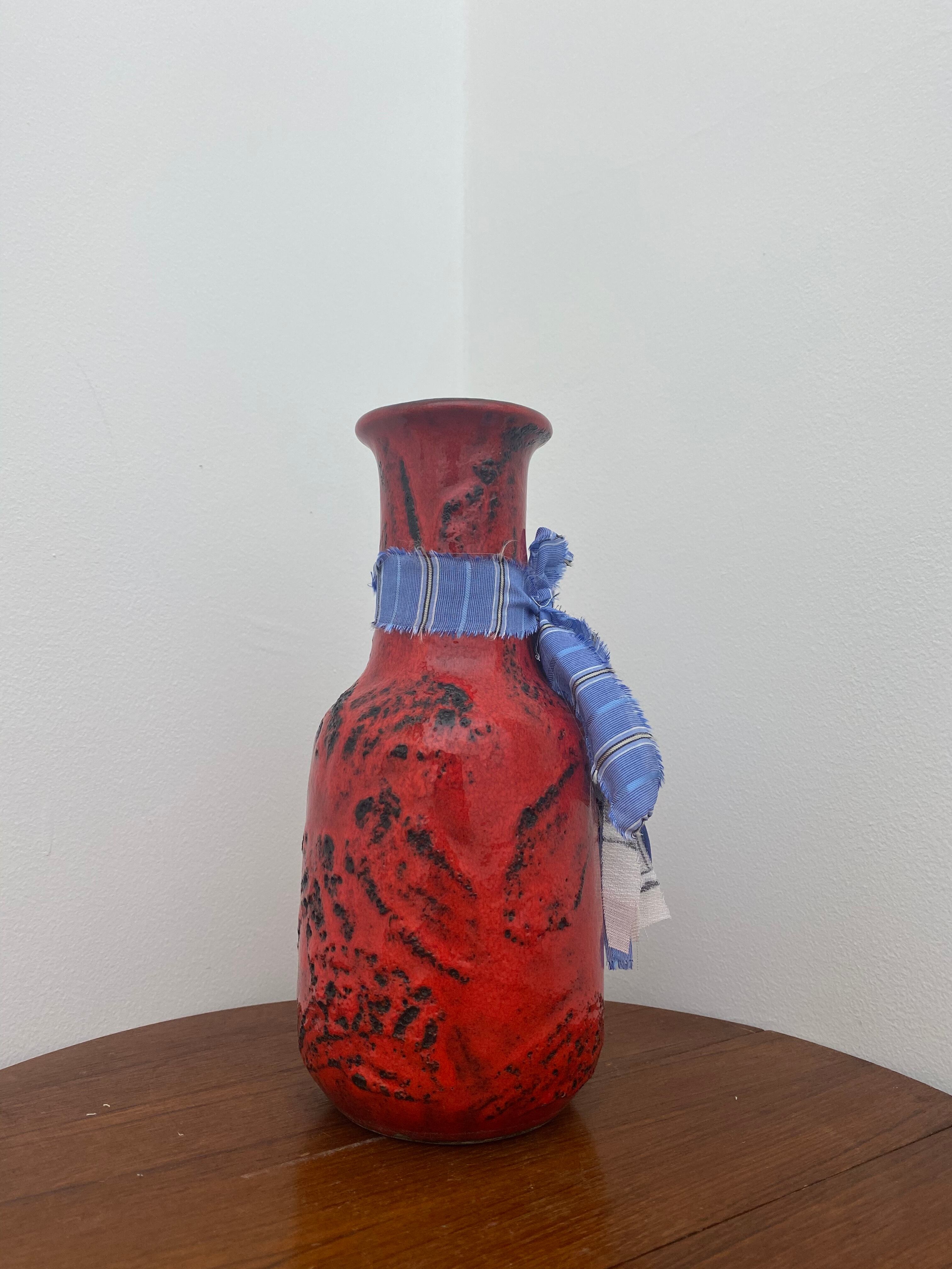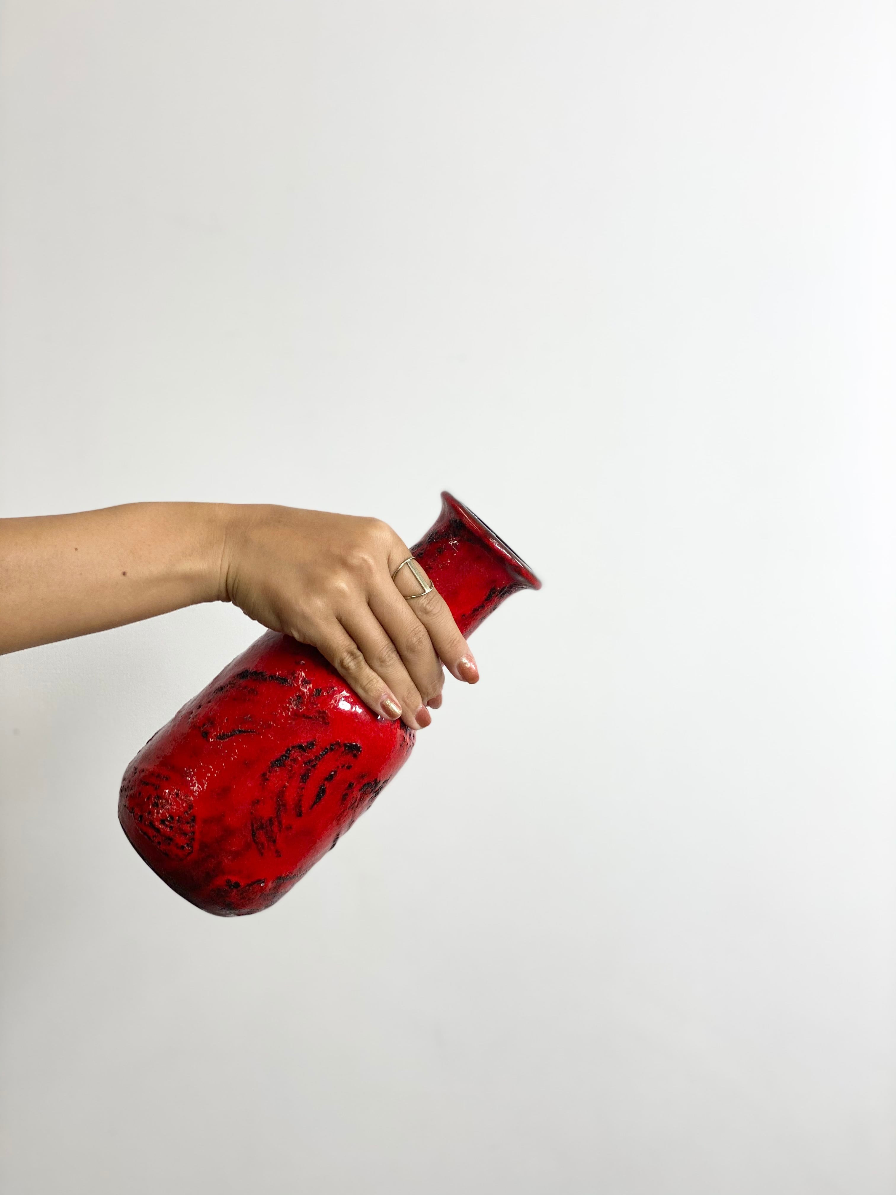 ドイツ製 落ち着いたレッドの色味と凸凹した表情に、黒のランダムな模様がポイントのフラワーベース。