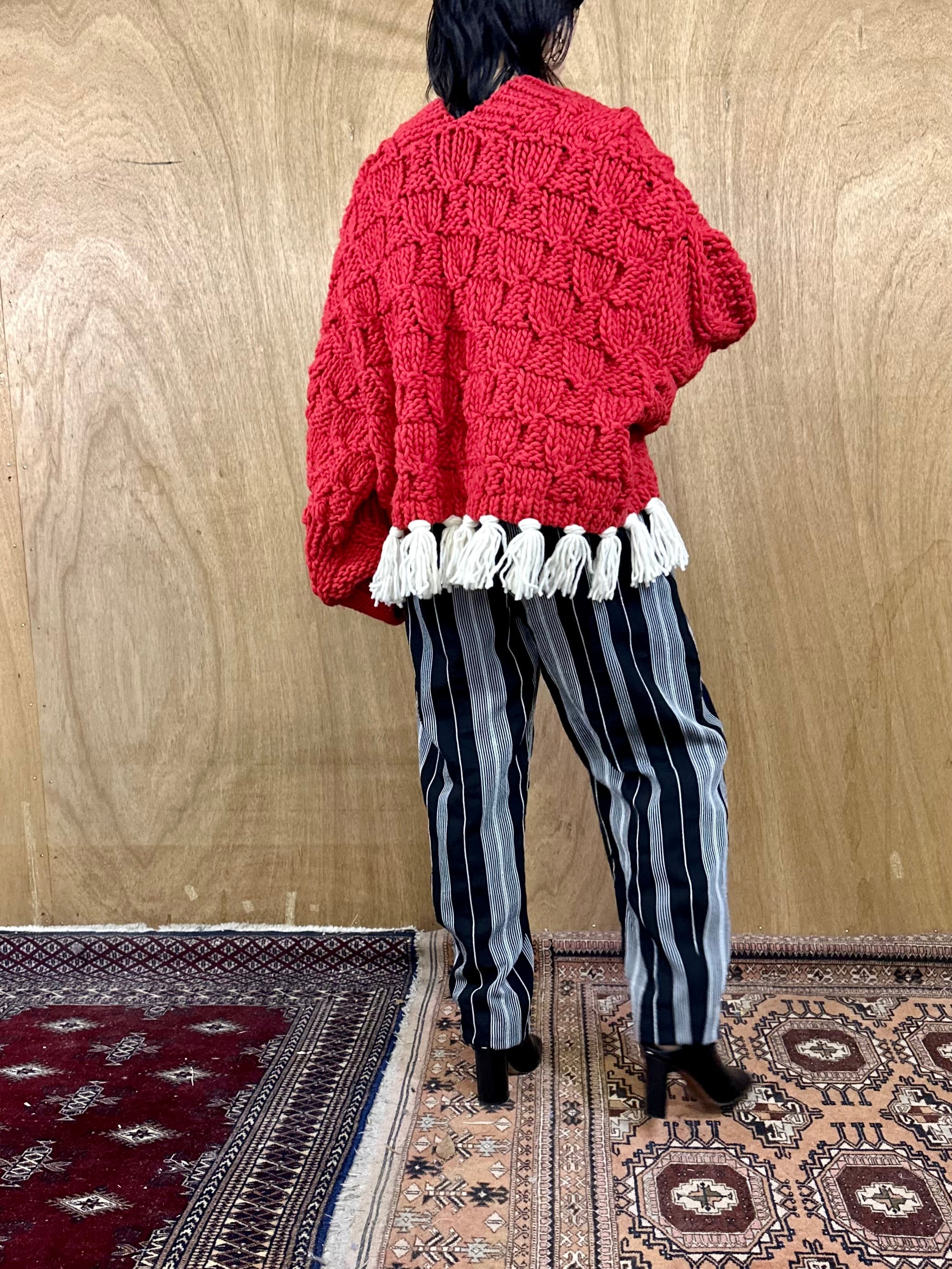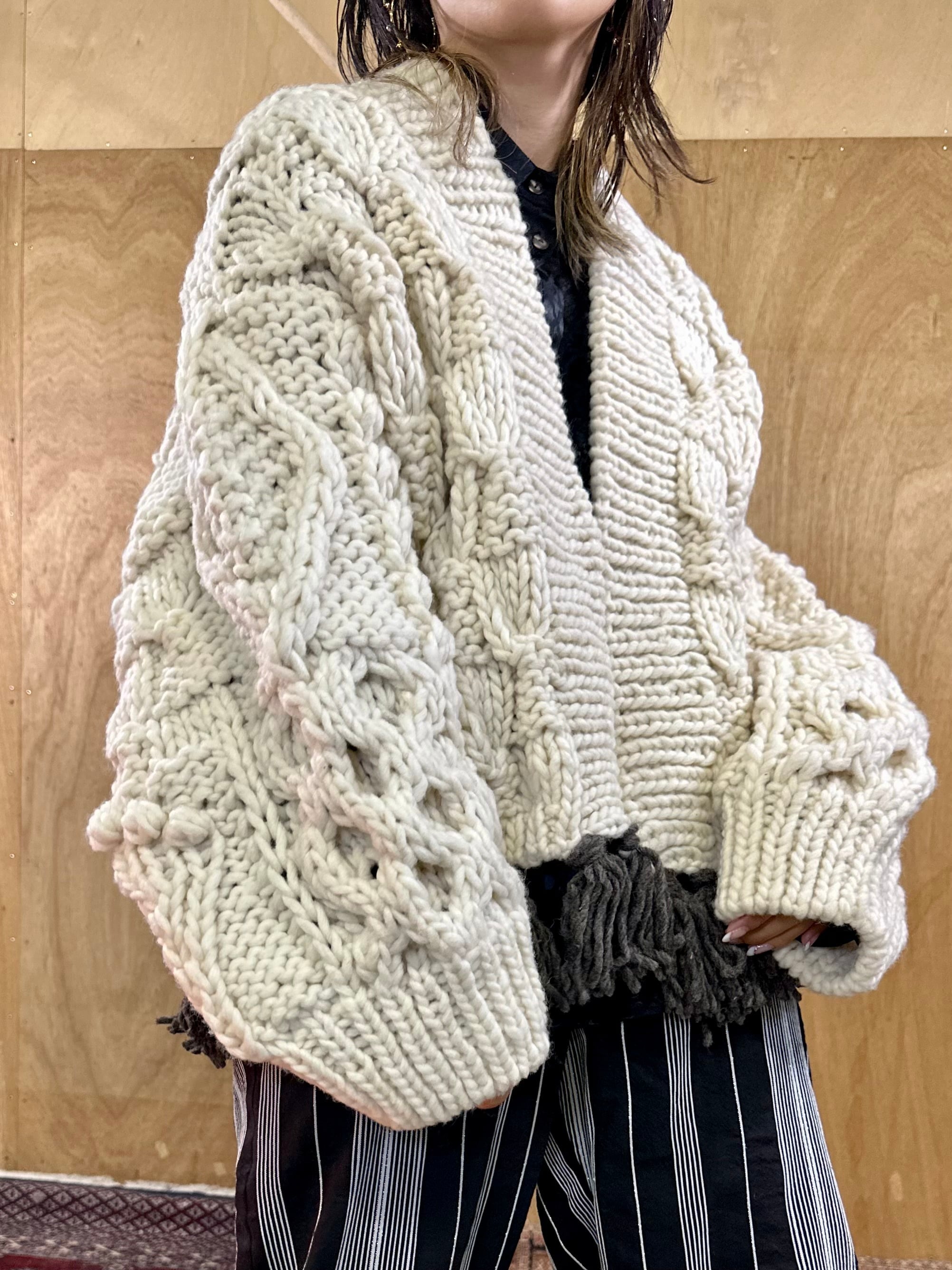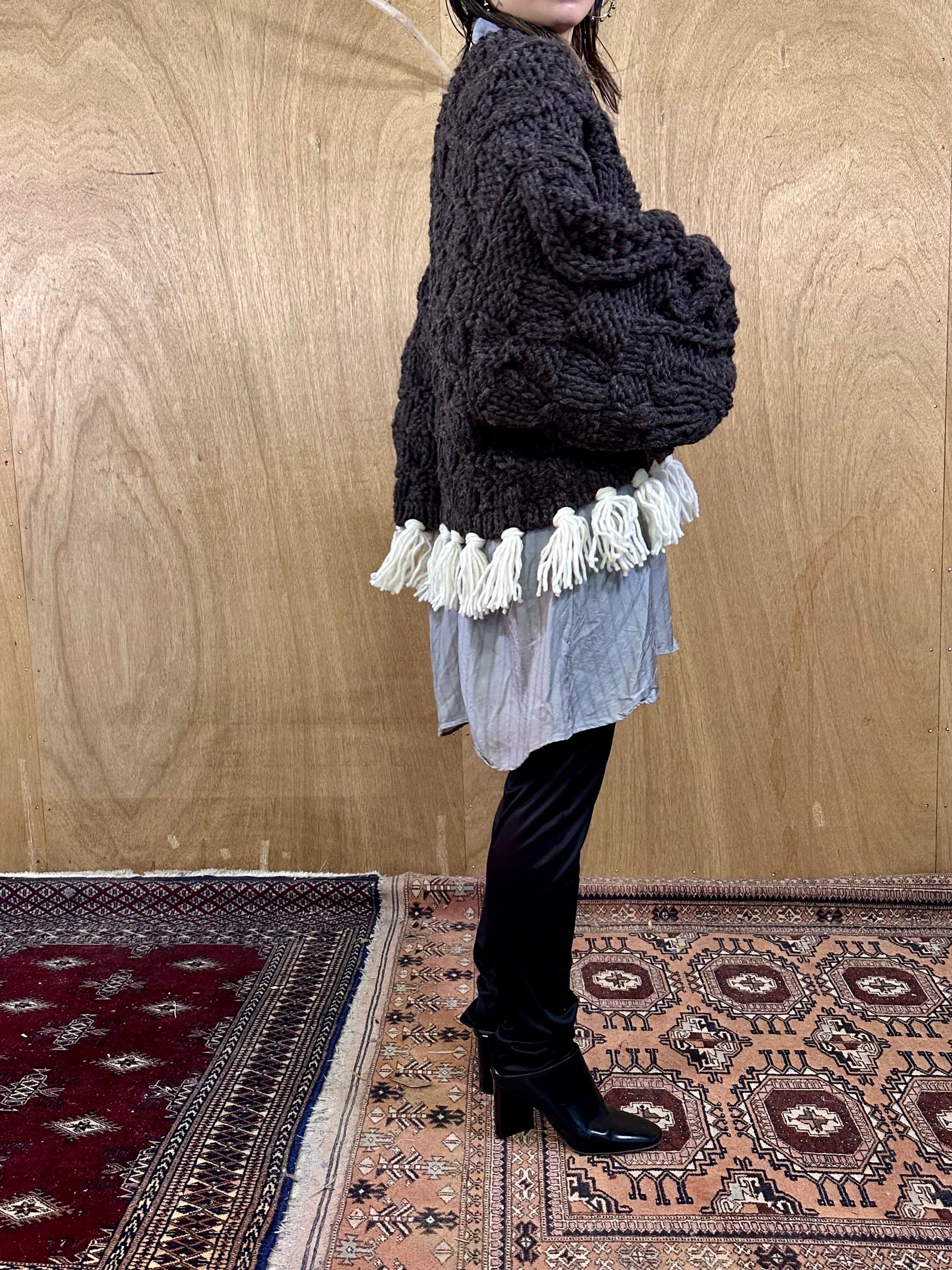 【BLACK LABEL】HAND KNIT FRINGED CARDIGAN