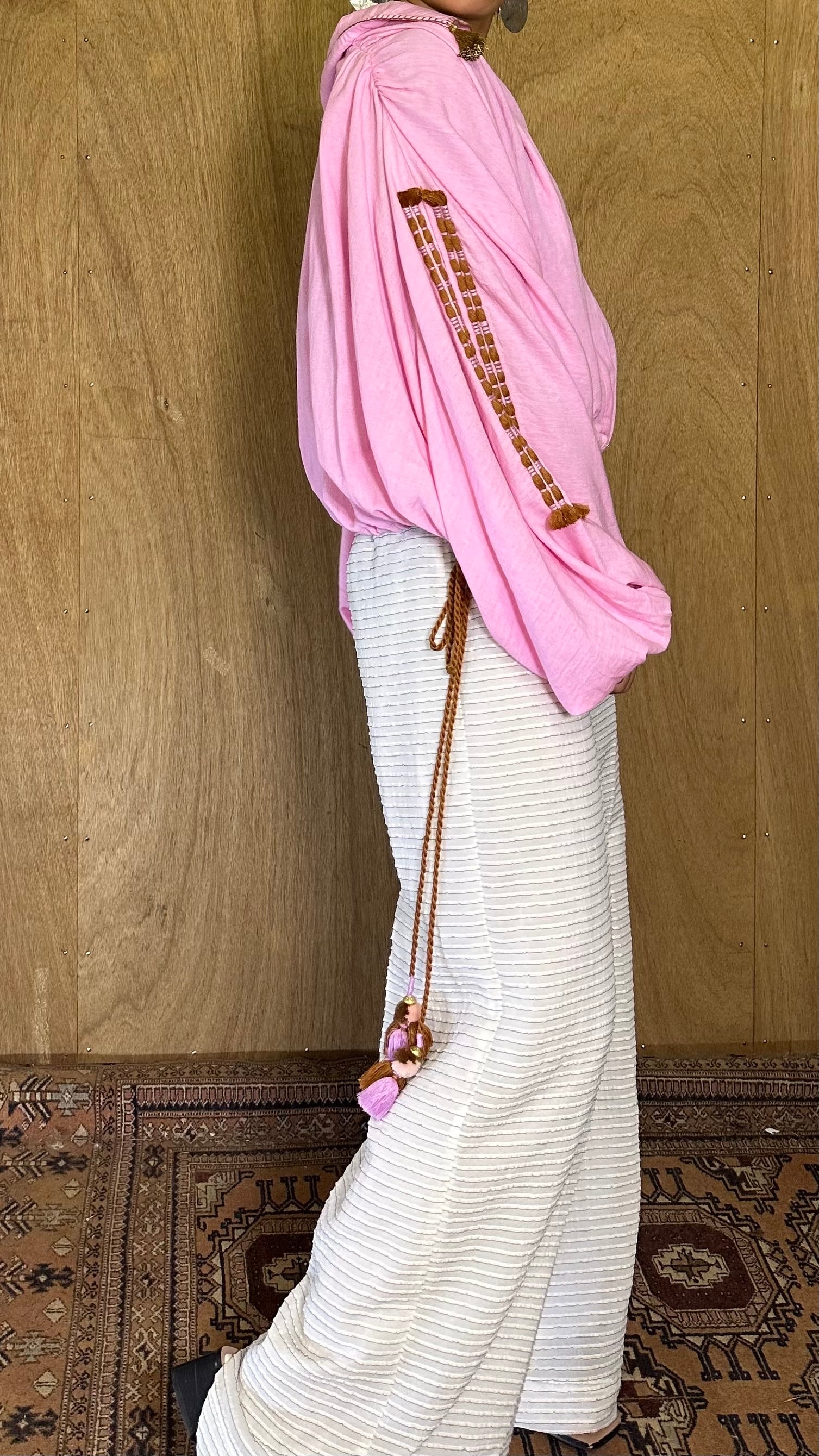 ボリュームたっぷりのギャザーブラウス。