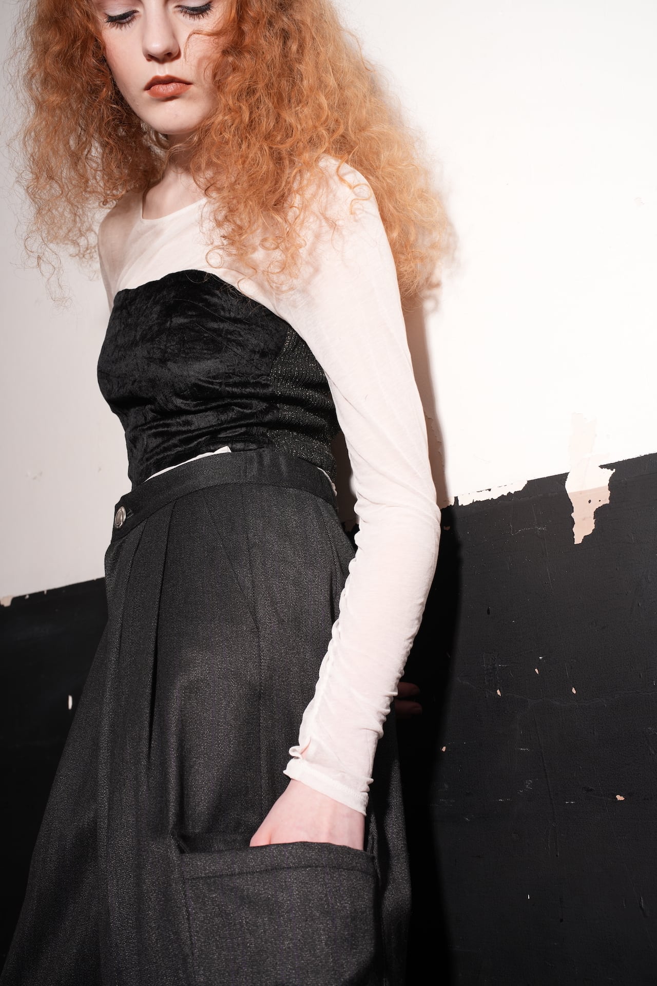 VELOR JERSEY CRINCLE BUSTIER / BLK