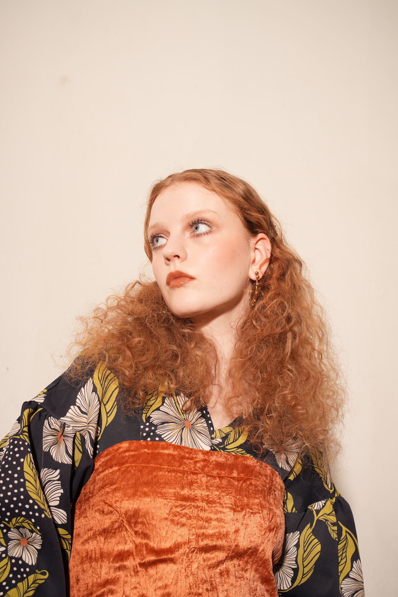 シーズンテーマであるロンドン、特に60年代のSwinging Londonをイメージして作ったランダムなシワと光沢、ベロアの毛羽が作り出す豊かな表情。