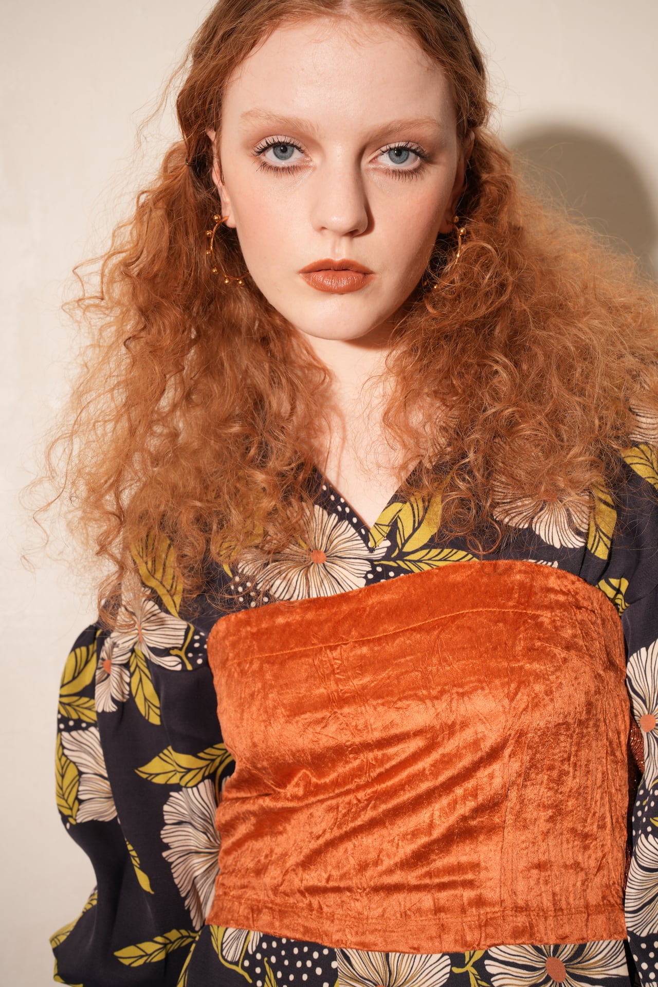 VELOR JERSEY CRINCLE BUSTIER / ORANGE