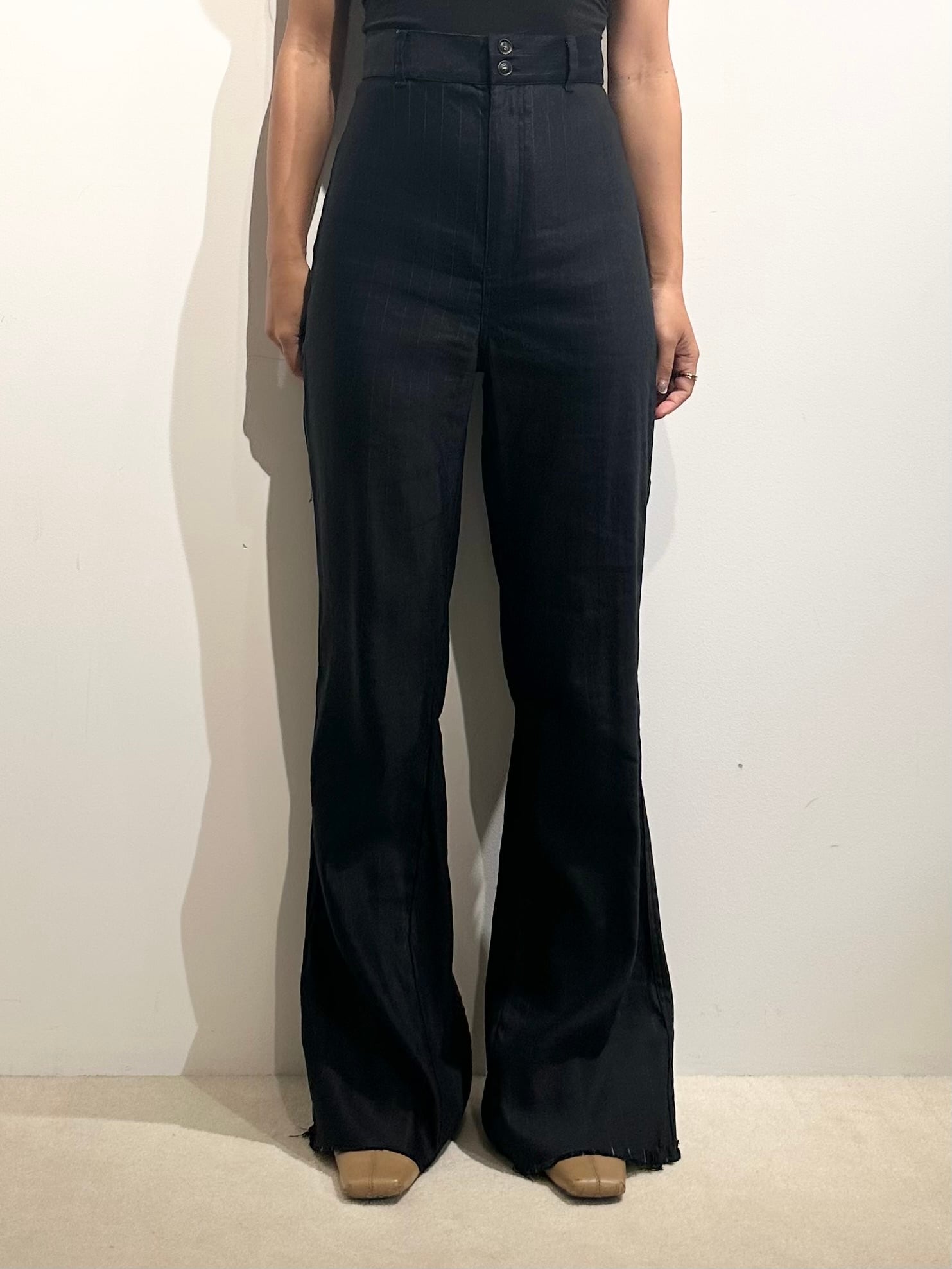 NALYA BACK SLIT SEMI-FLARE TROUSERS / NVY